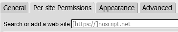 The ‘Per-site Permissions’ and ‘Advanced’ tabs are what we are most interested in here.