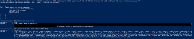 Invoke-SqliteQuery -DataSource $database -query "SELECT record FROM collection_data WHERE record LIKE '%key-policy%'" |